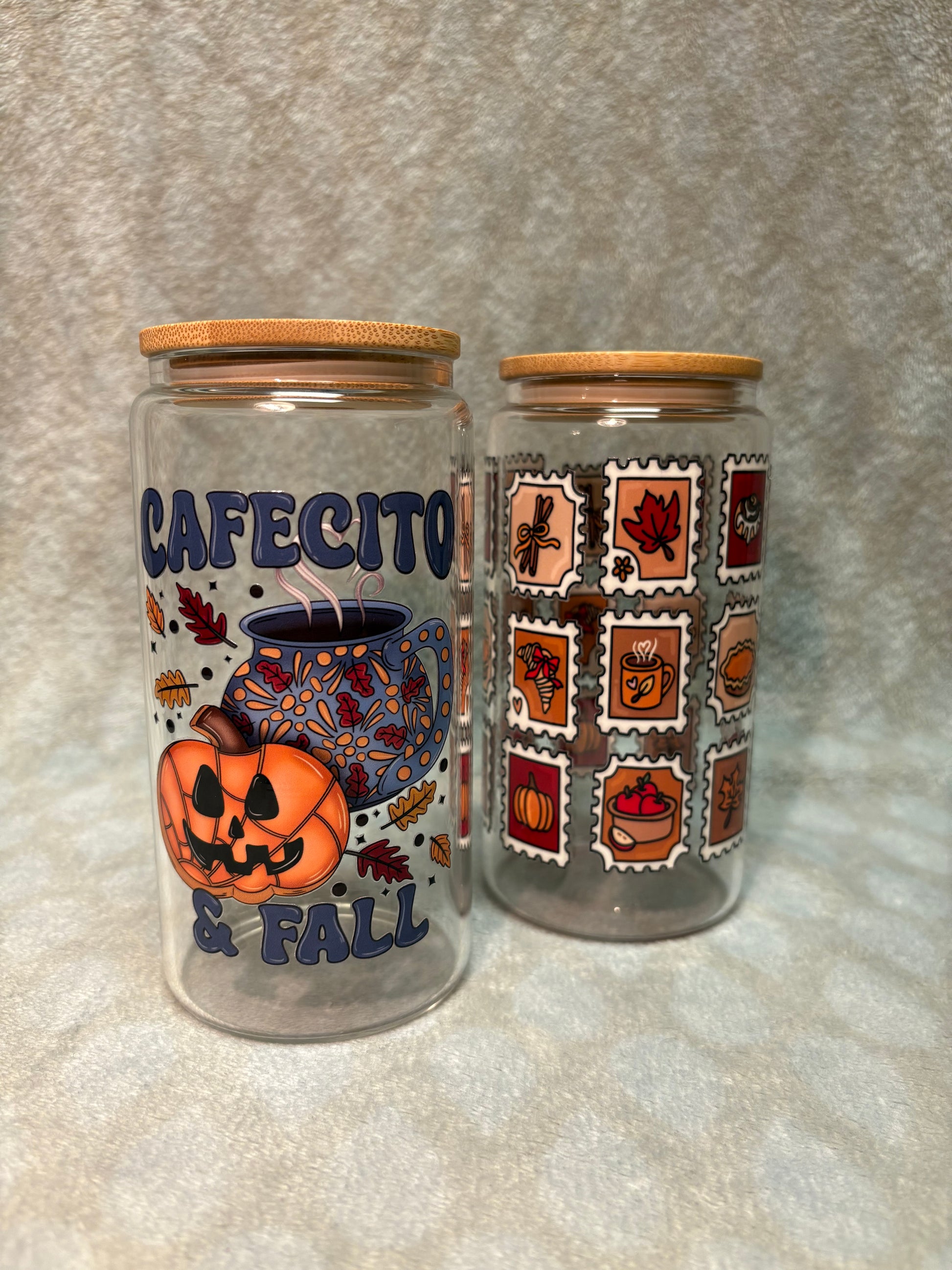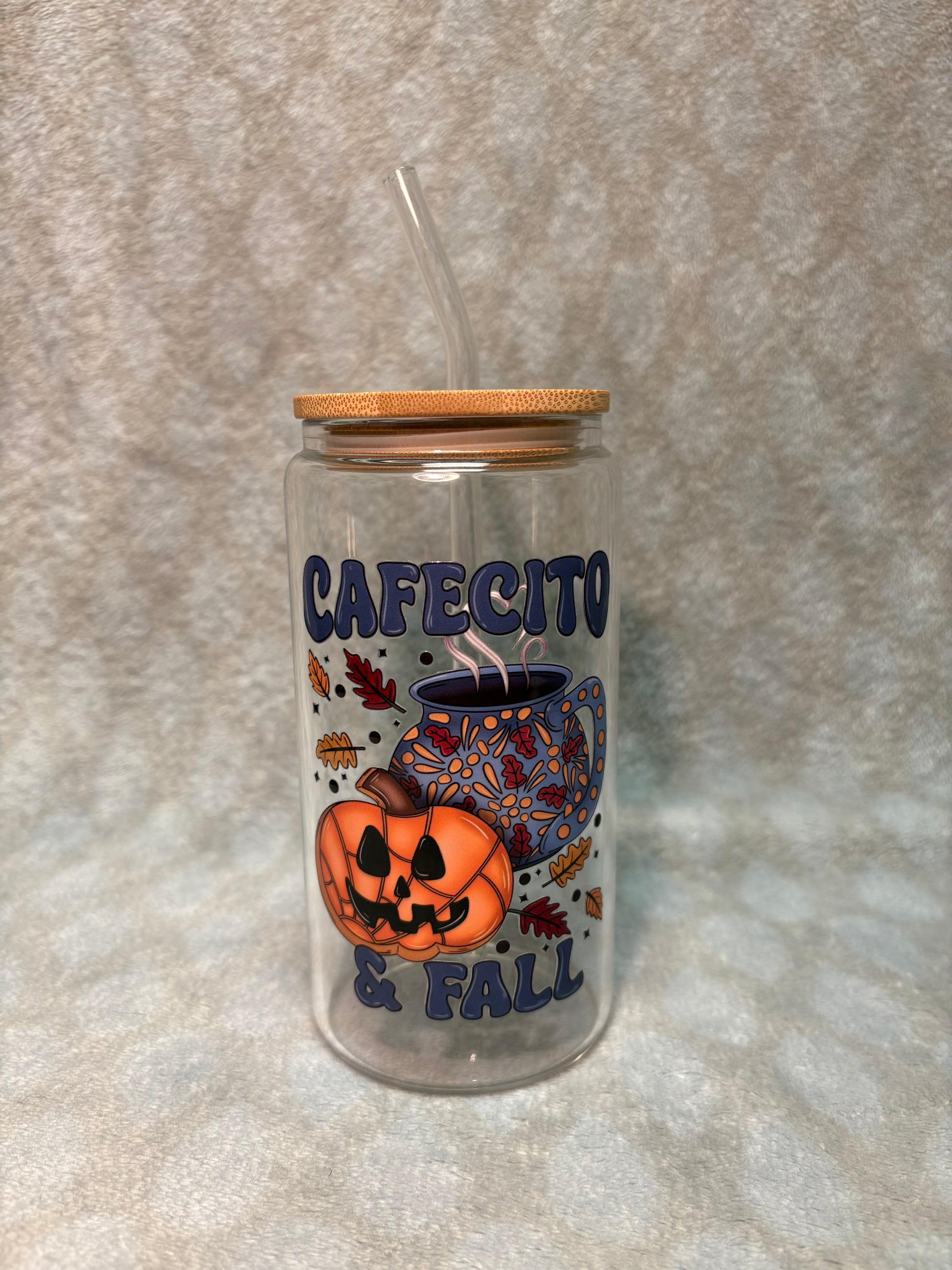 This is a glass 16 oz libbey cup. It is the perfect gift for friends or family and brings an autumn vibe to any space.